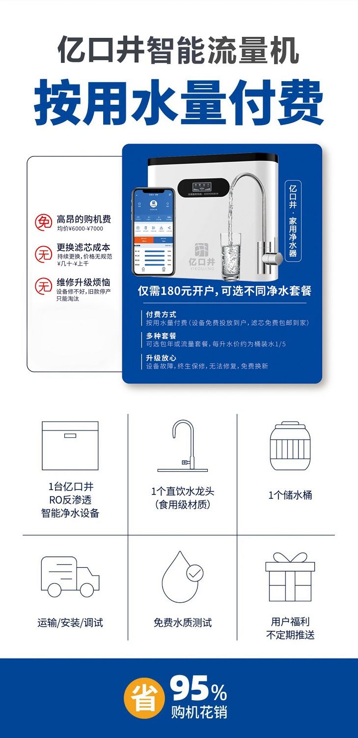 2、付费方式 按用水量付费(设备、滤芯免费投放)