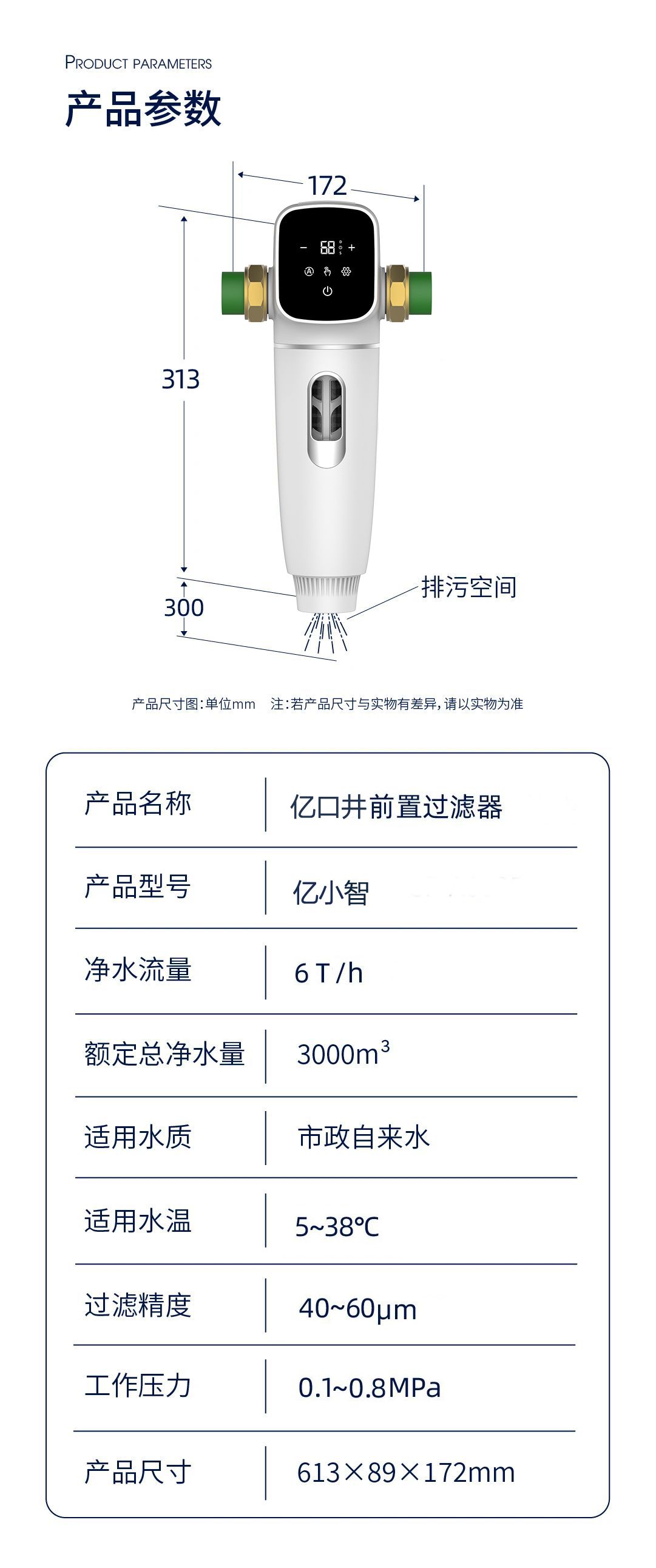 产品名称:亿口井前置过滤器
